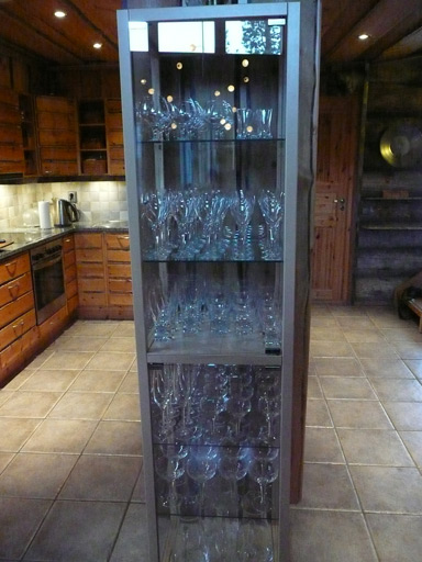 Glass cabinet... with all types of glasses - for brandy, wine, beer, etc etc